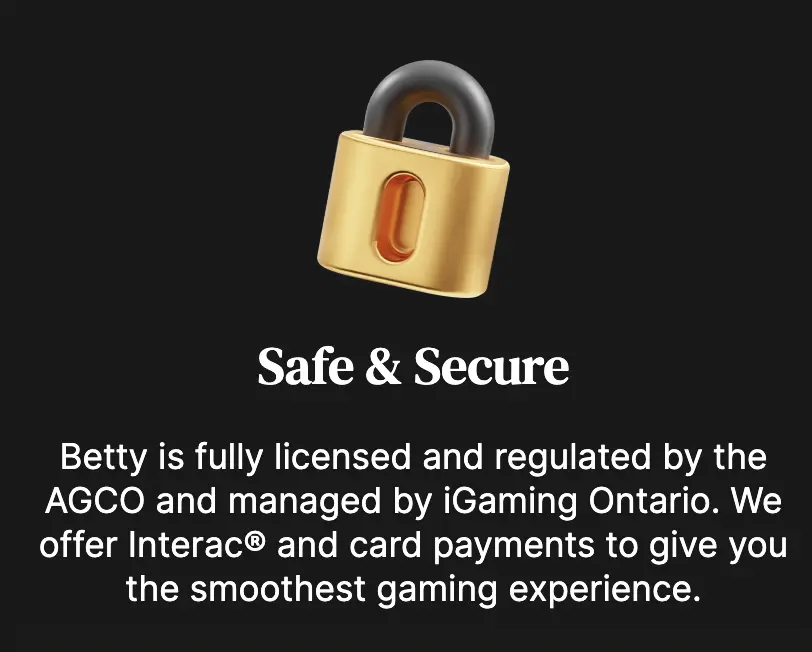 At BettyCasino, the safety of our users is highly important. We meet all of the requirements of the AGCO, Alcohol and Gaming Commission of Ontario, and operate under one of their licenses. To receive the license, we have to implement multiple security systems to protect our servers and our users. Examples of the security measures we have implemented are: