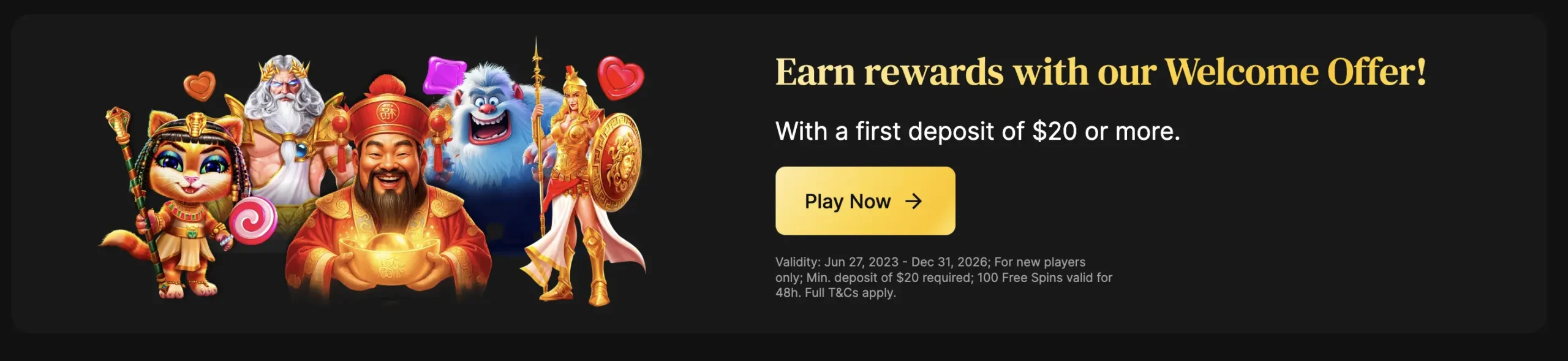 | No.1 | Deposit at least C$20 and receive up to 100 free spins. | 24h after deposit |