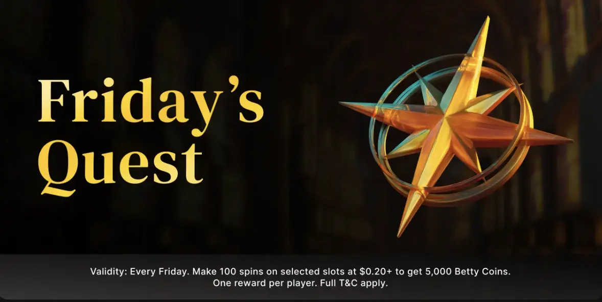 | Full Spin Friday | Spin at least 100 times on any slot with spins of at least C$0.20 and receive your reward | 5.000 Betty Coins |