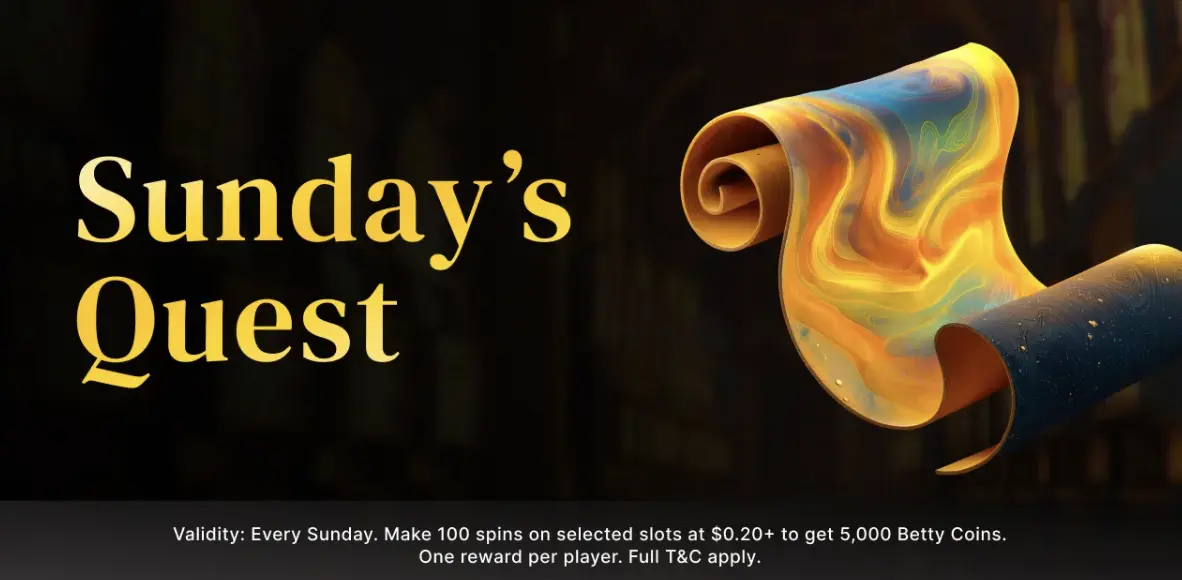 | Spin Quest Sunday | Spin at least 100 times on any slot with spins of at least C$0.20 and receive your reward | 5.000 Betty Coins |