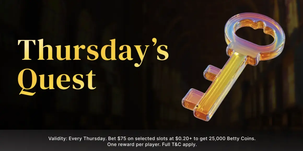 | Bet Quest Thursday | Wager at least C$75 on any slot game with spins of at least C$0.20 and get your reward | 25.000 Betty Coins |